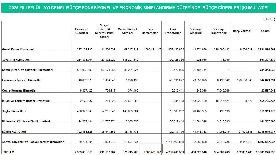 2025 yılı için öngörülen toplam 14,7 trilyon TL’lik ödeneğin yüzde 9’u eylül ayında kullanıldı. Geçen yıl aynı dönemde bu oran yüzde 8,4’tü.