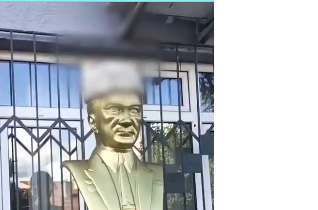 İzmit’te yaşanan olayda, okul bahçesinde top oynayan çocukların topunu yanındaki kılıçla parçalayan bir şahsın, kesilen topu Atatürk büstüne astığı görüldü.