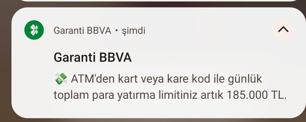 Garanti BBVA, geçtiğimiz aylarda para çekme limitlerinde yaptığı değişikliğin ardından bu ay itibarıyla kart ve QR kod aracılığıyla yapılacak para yatırma işlemlerinde de limitleri 185 bin TL’ye kadar yükseltti.
