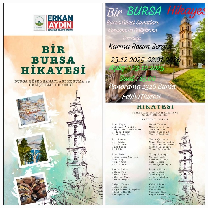 Bursa Güzel Sanatları Koruma ve Geliştirme Derneği’nin, 50 sanatçının yaklaşık 80 eseri ‘’Bir Bursa Hikayesi’’ isimli sergisi, 02 Ocak 2026 tarihine kadar Panorama 1326 Fetih Müzesi’nde biz sanat severlere sunulacaktır.