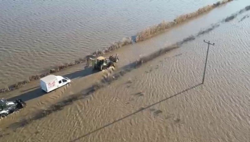 Öte yandan, taşkın nedeniyle binlerce dönüm ekili tarım arazisi de sular altında kaldı.