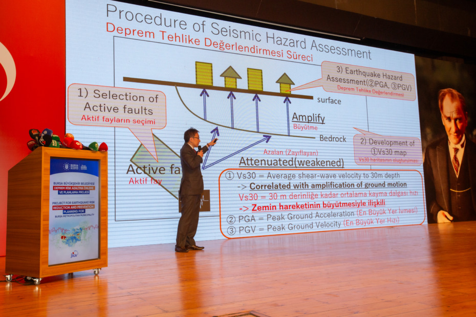 Bursa Büyükşehir Belediyesi’nin Japonya Uluslararası İşbirliği Ajansı (JICA) ile birlikte yürüttüğü ‘Deprem Risk Azaltma ve Önleme Planlama Projesi’nin ilk çıktıları olan ‘Deprem tehlike değerlendirmesi’, ‘Bina risk değerlendirmesi’, ‘Altyapı ve kamu bina risk değerlendirmesi’ sonuçları kamuoyuyla paylaşıldı.