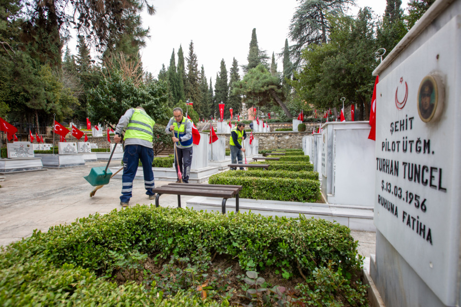 Büyükşehir Belediyesi, vatandaşların 18 Mart Çanakkale Zaferi ve Şehitleri Anma Günü’nde şehitlikleri sorunsuz şekilde ziyaret edebilmeleri için kapsamlı temizlik çalışması yaptı. Pınarbaşı Şehitliği başta olmak üzere 17 ilçedeki şehitlikleri titizlikle temizleyen ekipler, 18 Mart Çanakkale Zaferi’nde aziz şehitlerin hatıralarına yakışır şekilde, şehitlikleri ziyarete hazır hale getirdi.