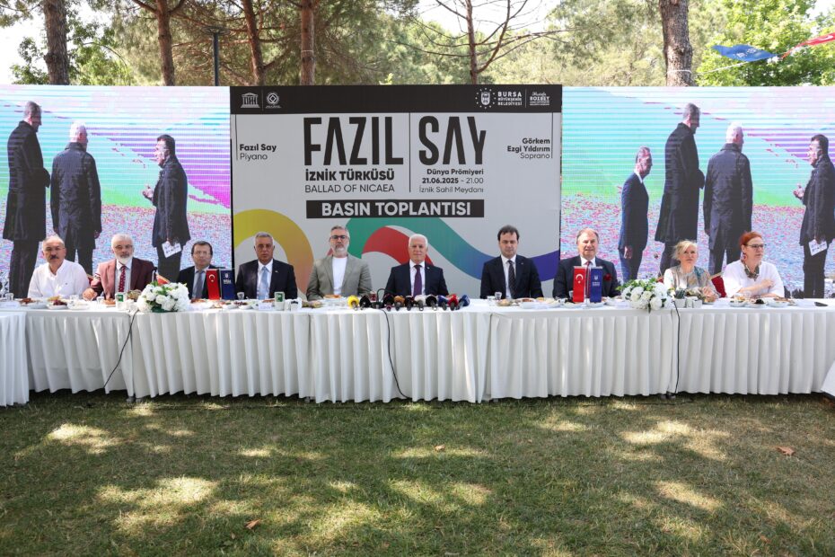 İznik’in sadece bir kent ya da önemli bir miras olmadığını söyleyen Başkan Mustafa Bozbey, çağlar boyunca pek çok medeniyete ev sahipliği yaptığını ve geçmişle bugünü buluşturan bir dünya merkezi olduğunu dile getirdi. İznik’in Helenistik dönemden Roma’ya, Bizans’tan Osmanlı’ya uzanan köklü geçmişiyle, pek çok kültürün bir araya geldiği eşsiz bir sentez olduğunu anlatan Başkan Bozbey, “Tarihin izlerini taşıyan yapılarıyla, gün yüzüne çıkan ve hâlâ keşfedilmeyi bekleyen antik mirasıyla, dünyada eşi benzeri olmayan kentlerden biridir. Bursa Büyükşehir Belediyesi olarak kentimizin güzelliklerini hak ettiği değere ulaştırmak en önemli hedefimiz. Bugün Fazıl Say’ın İznik Türküsü’nün dünya prömiyerini duyurarak, bu hedef doğrultusunda bir tuğla daha koyuyoruz. Bu eşsiz ve çok değerli eseri Bursamıza, İznik’e ve gelecek kuşaklara armağan eden değerli sanatçımız Fazıl Say’a teşekkür ediyorum. Fazıl Say, ‘İznik Türküsü’ aldı eseri Almanya başta olmak üzere birçok ülkede vereceği konserlerde seslendirecektir. Tüm dünya insanlarını, müziğin birleştirici gücünde buluşmak üzere İznik’e davet ediyorum. ‘İznik Türküsü’ adlı bu anlamlı eser, Fazıl Say ve Soprano Görkem Ezgi Yıldırım ile ilk kez seslendirilecek. Bu değerli ana, İznik Gölü’nün eşsiz manzarasında tanıklık etmeye ve bu özel konseri hep birlikte yaşamaya tüm sanatseverleri, Bursalıları ve kentimizi ziyarete gelenleri bekliyorum” diye konuştu.