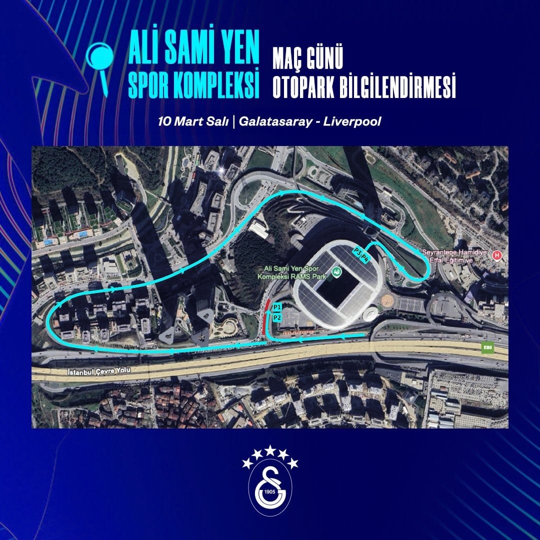 Maç günleri RAMS Park’a P3 ve P4 otoparkına TEM yönünden gelecek olan taraftarlarımız, Avangart Siteleri’nin yanındaki yoldan Azerbaycan Caddesi’ne inerek Metin Oktay Caddesi’ne yukarı yönlü bağlanmak suretiyle bu otoparklara ulaşım sağlayacaklardır.