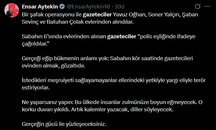– CHP Genel Başkan Yardımcısı Ensar Aytekin