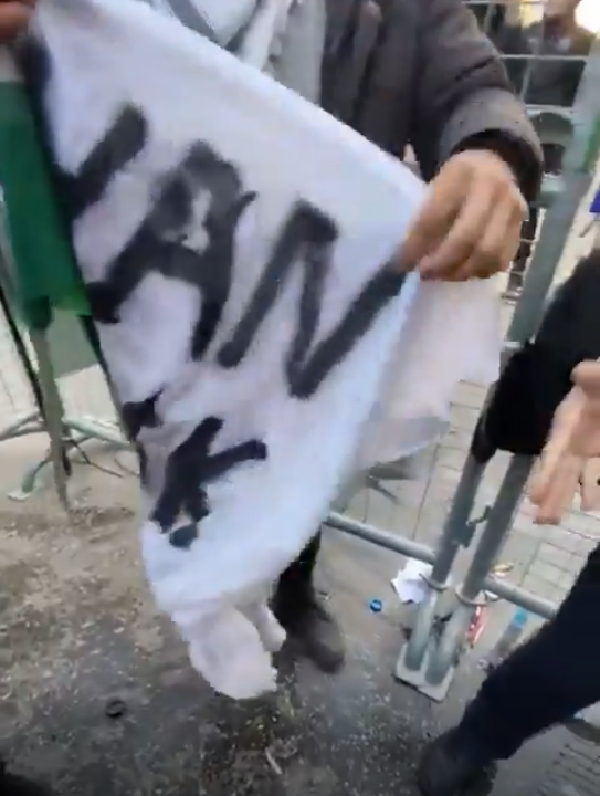Sabahın erken saatlerinde başlayan mitinge “Siyonizme Silah Taşıyan Katil Zim Katil Maersk Türkiye’den Defol!” ifadelerini taşıyan pankartı sokmak isteyen gençlere önce izin verilmedi. Kendisini TÜGVA Karadeniz Bölge Sorumlusu olarak tanıtan bir kişi, pankartta yer alan ifadelere herhangi bir itirazlarının olmadıklarını ve bu ifadelere karşı ‘saygımız sonsuz’ ifadelerini kullandığı çekilen videoya yansıdı.