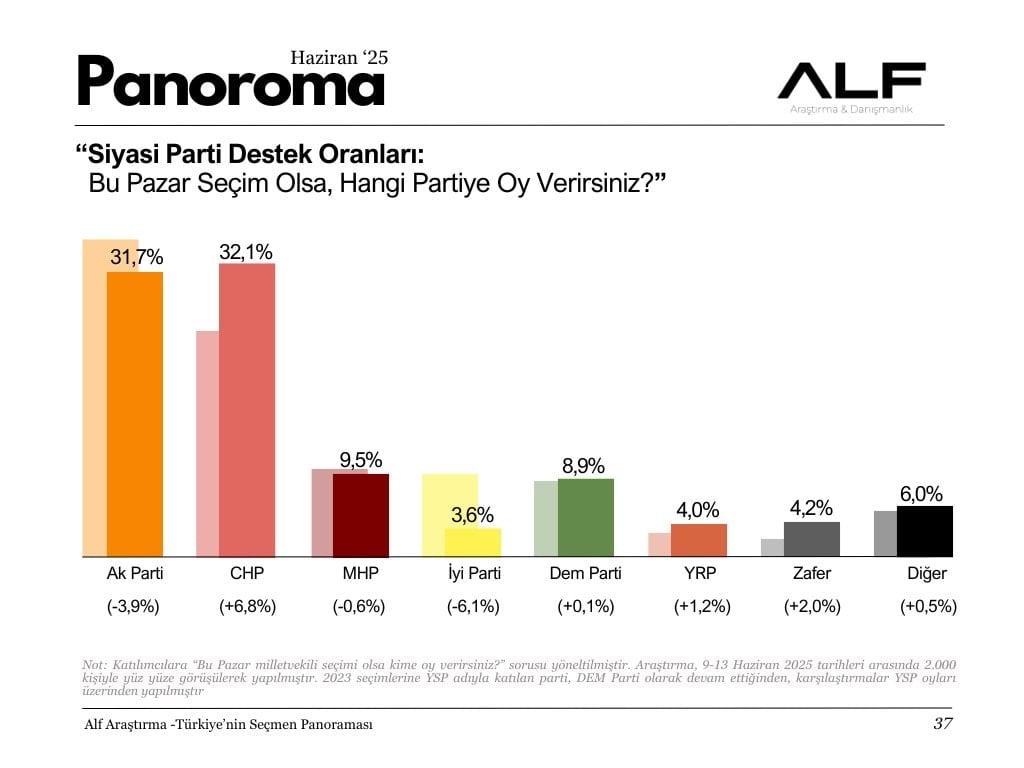 ALF Araştırma, 9-13 Haziran tarihleri arasında 2 bin kişiyle yüz yüze yaptığı anketin bulgularını paylaştı.