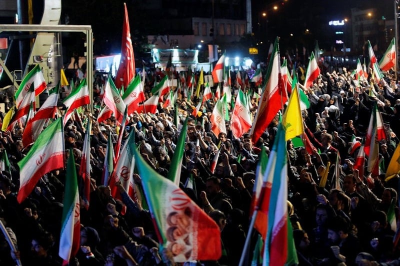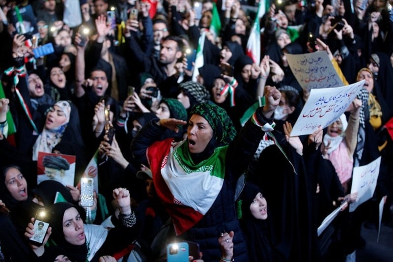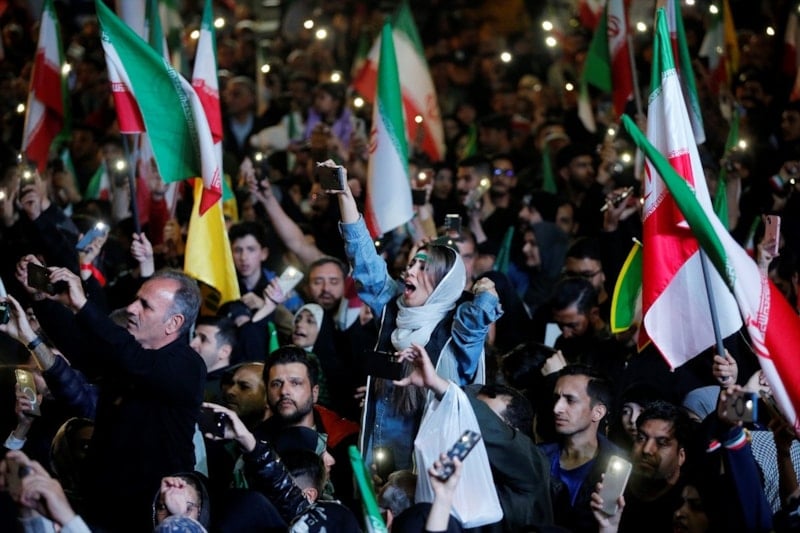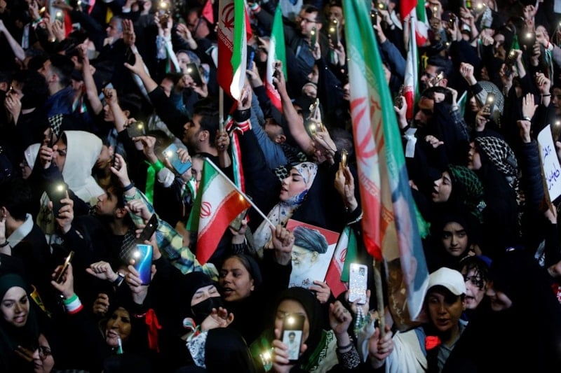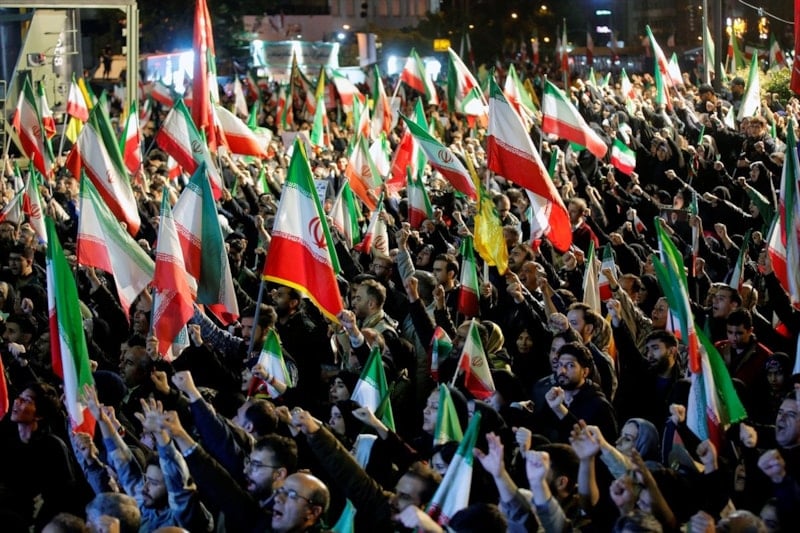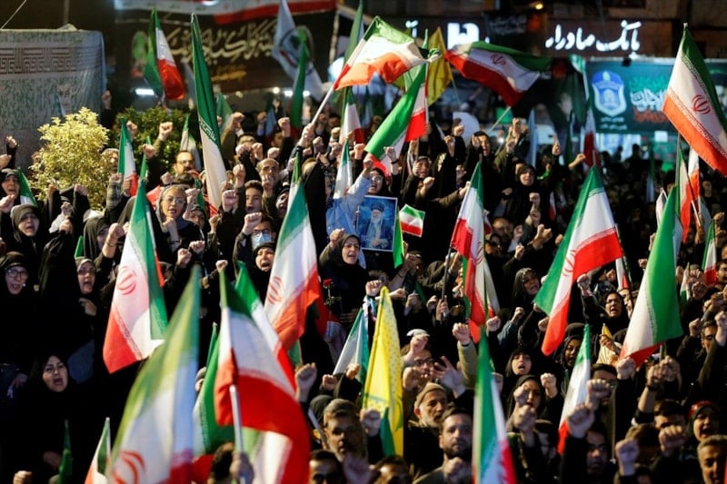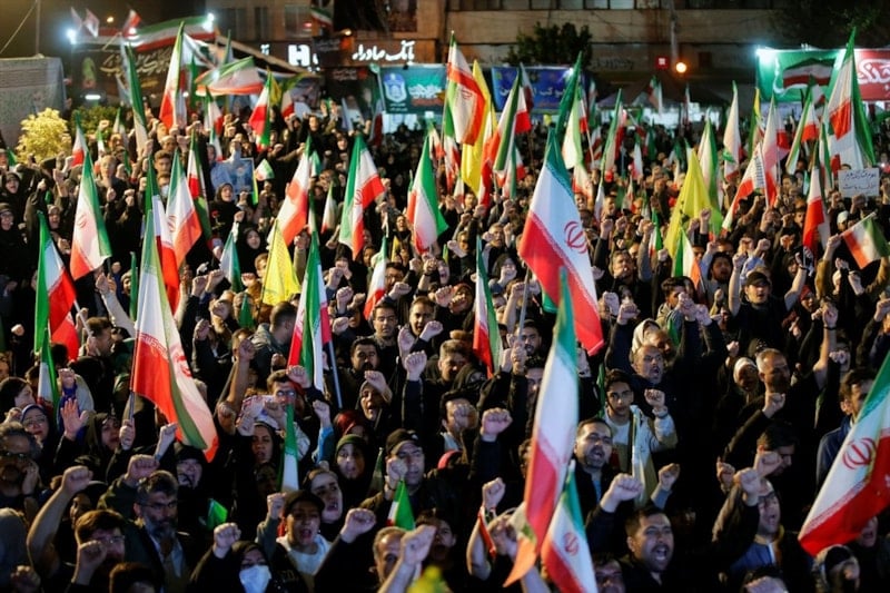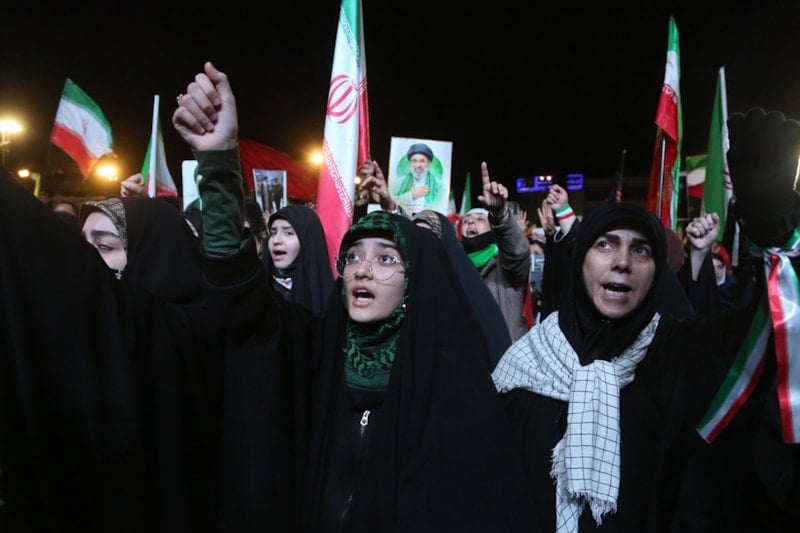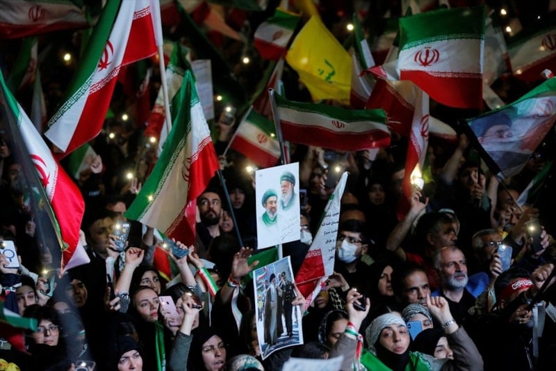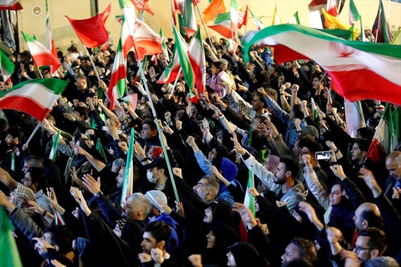 Ellerinde İran bayrakları taşıyan Tahranlılar, ABD ve İsrail aleyhine sloganlar attı.