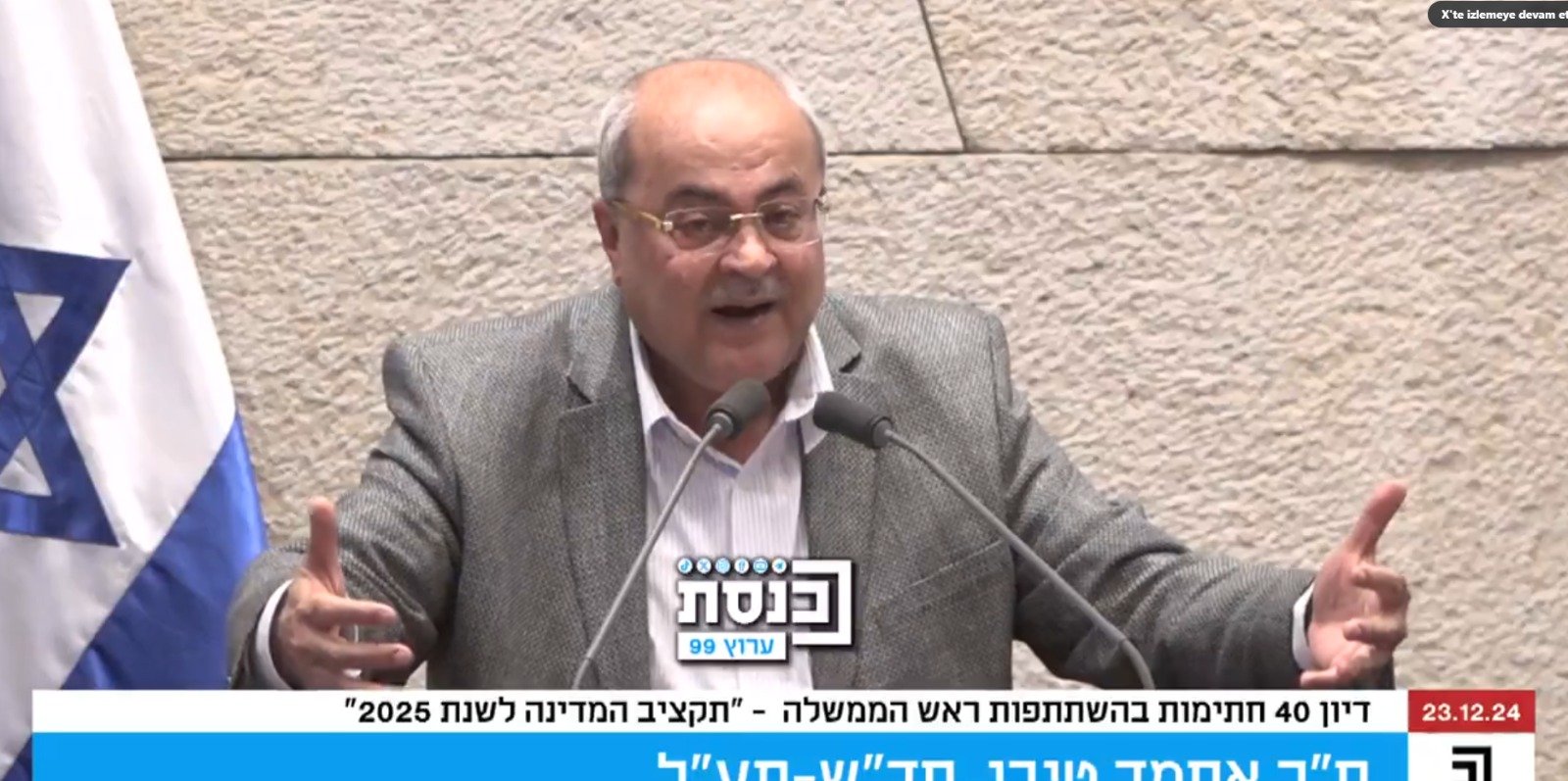 İsrailli Knesset üyesi ve Arap Değişim Hareketi Başkanı Dr. Ahmed Tibi, İsrail Meclisi’nde (Knesset) İsrail Başbakanı Binyamin Netanyahu hükümetinin, 7 Ekim’den bu yana Gazze’ye yönelik gerçekleştirdiği saldırılarına tepki gösterdi.
