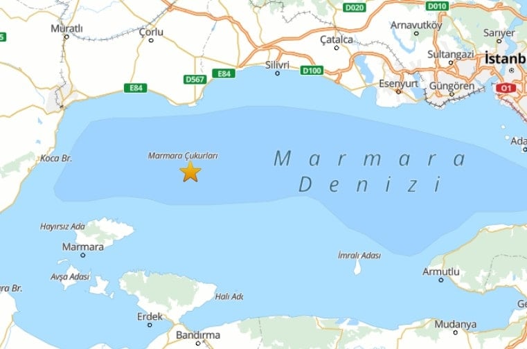 Afet ve Acil Durum Yönetimi Başkanlığı (AFAD), saat 13:43’te Marmara Ereğlisi açıklarında 3,5 büyüklüğünde deprem meydana geldiğini açıkladı.