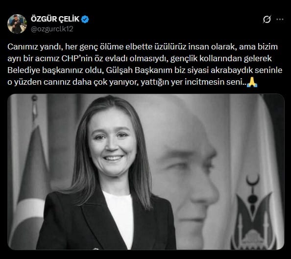 Çelik, merhum başkanın vefatını siyasi bir malzeme haline getirerek, ölümü CHP Genel Başkanı Özgür Özel ile ilişkilendirmeye çalıştı. Özgür Özel’e seslenen Çelik, paylaşımında şu ifadelere yer verdi:
