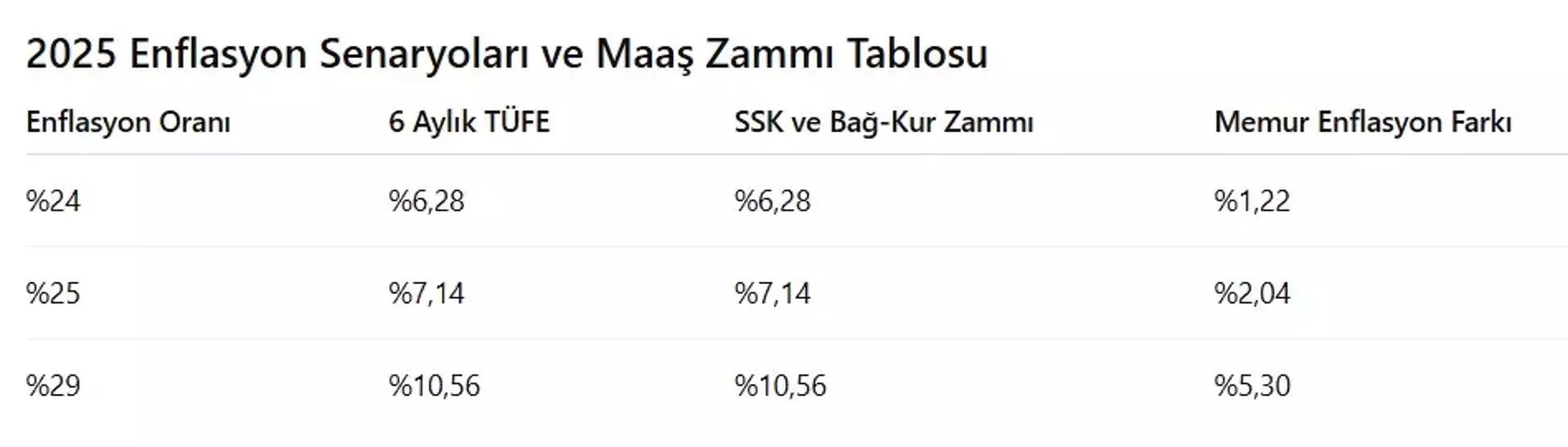 Enflasyon %25 çıkarsa memurlara %2,04 fark yansıyacak.