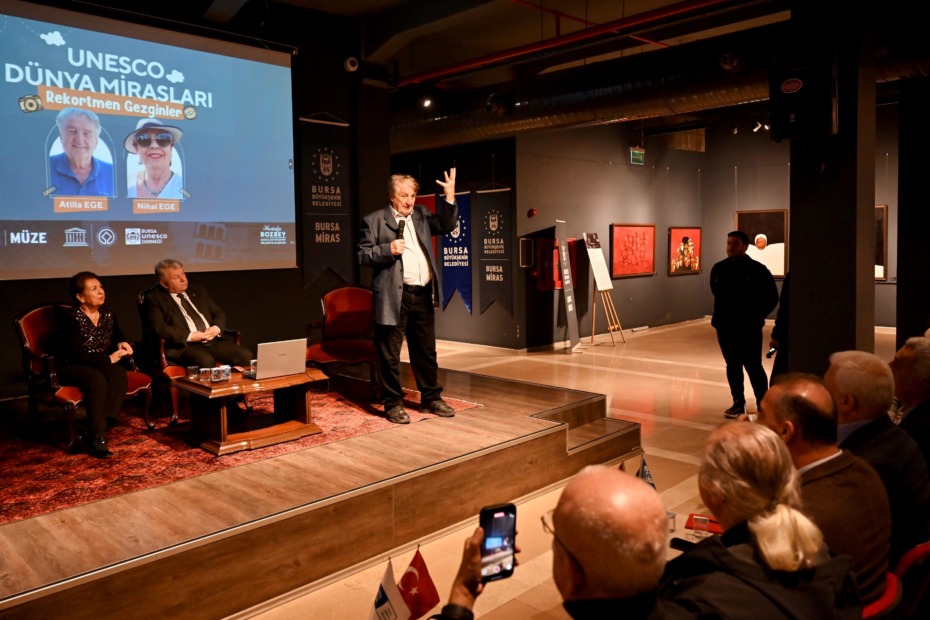 Bursa Büyükşehir Belediyesi tarafından düzenlenen ‘Rekortmen Gezginler Söyleşisi’nin konukları, Unesco Dünya Mirası Listesi’nde bulunan bin iki noktayı ziyaret ederek dünya rekoru kıran Dünya Miras Gezginleri Derneği Başkanı Atilla Ege ve Nihal Ege oldu.