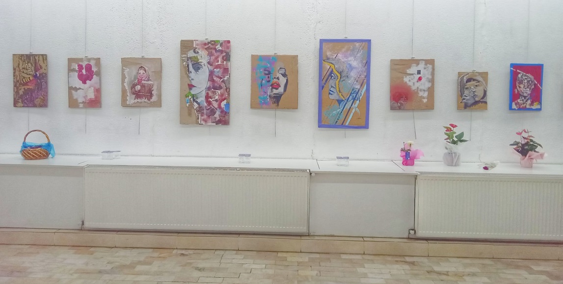 Halı üzerine tamamen kendi tekniklerimle tablolar yaptım. Diğer tarafta sıfır atık projesi kapsamında kartonları değerlendirerek özgün tasarımlar üzerine çalıştım.’’