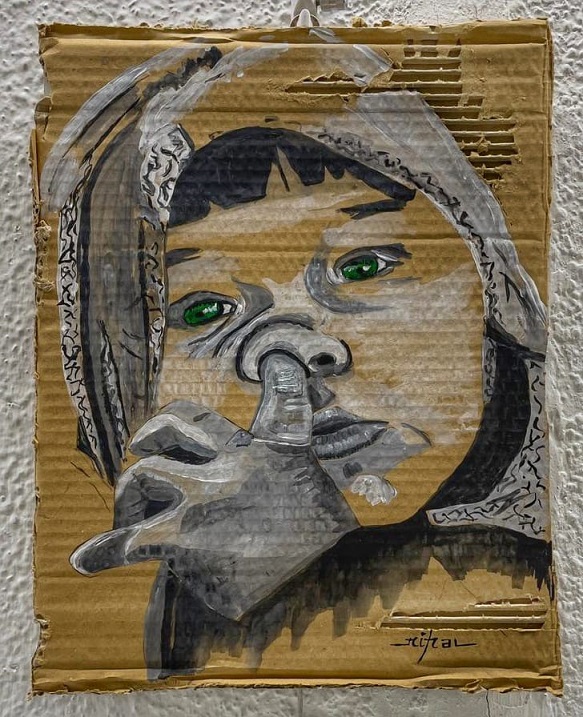 Evet, herkesin günlük yaşamında kullanıp çöpe attığı, bazı bilinçli tüketicilerin geri dönüşüm kutularına attığı o karton kutular, (akrilik) ve eskiyen halılar (akrilik sprey boya) bir sanatçı elinde, sanat eseri kimliğine dönüşmüş ve kirlenen dünyamıza bir nebze de olsa mesaj verilmiştir.