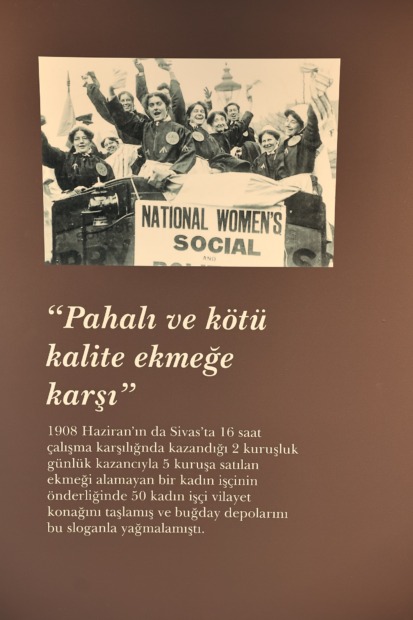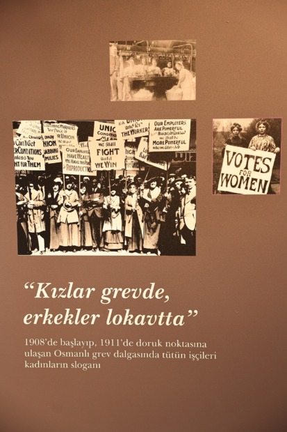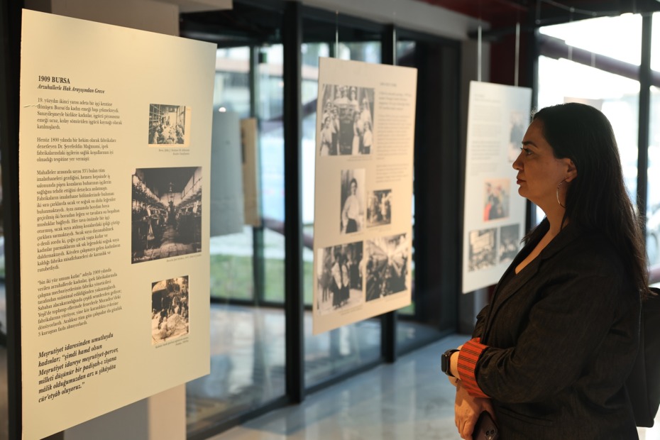 Sergi, 1910 yılında Kopenhag’da düzenlenen Uluslararası Emekçi Kadınlar Konferansı’nda Clara Zetkin ve arkadaşlarının Dünya Kadınlar Günü fikrini ortaya attığı dönemde, Bursa’da ipek işçisi kadınların grevde olduğu gerçeğini hatırlatarak, kadın emeğinin tarihsel mücadelesine dikkat çekiyor.