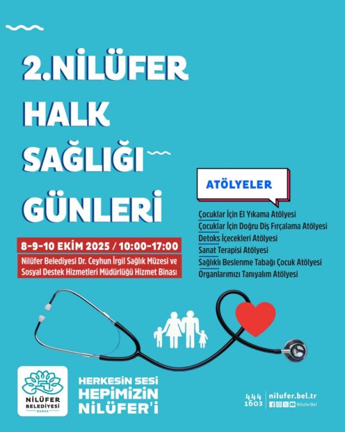 Nilüfer Belediyesi, 8-10 Ekim tarihlerinde 2. Nilüfer Halk Sağlığı Günleri’ni düzenliyor. Üç gün boyunca ücretsiz sağlık taramaları, atölyeler ve farkındalık stantlarıyla dolu program, vatandaşları sağlık için harekete geçmeye çağırıyor.
