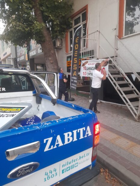 Nilüfer Belediyesi Reklam İlan ve Tanıtım Yönetmeliği, ana arterler, meydanlar ve halka açık diğer alanlara izinsiz afiş asılmasını yasaklıyor. Bu kurala uymayarak kent estetiğini olumsuz etkileyen, çevre ve görüntü kirliliğine yol açan reklam tabelalarına, el ilanlarına ve brandalara zabıta ekipleri müdahale ediyor.