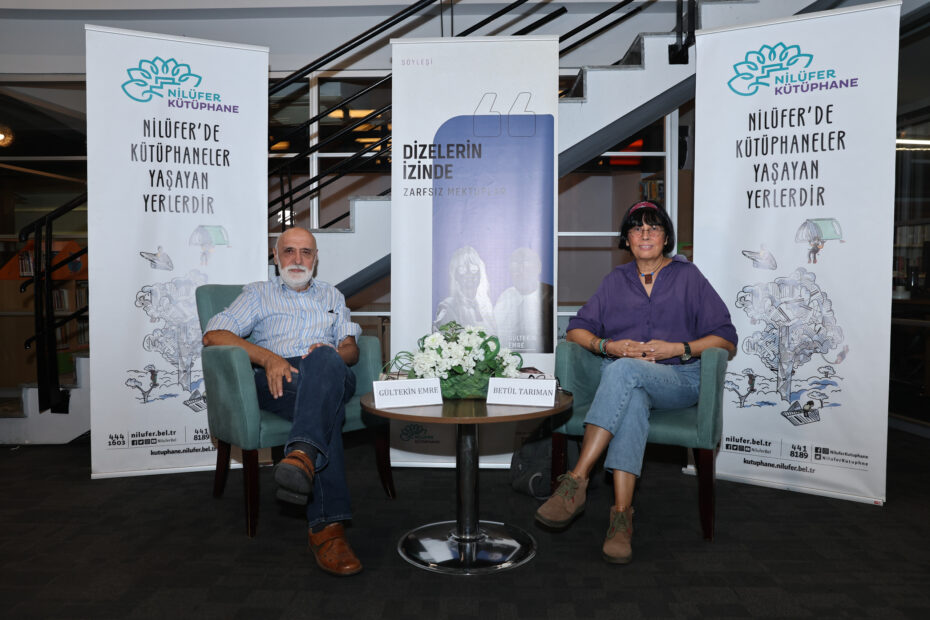 Nilüfer Belediyesi Şiir Kütüphanesi’nde düzenlenen “Dizelerin İzinde: Zarfsız Mektuplar” söyleşisinde bir araya gelen Betül Tarıman ve Gültekin Emre, kendi mektuplaşmalarından doğan kitaplarını ve günümüzde unutulmaya yüz tutan mektup yazma geleneğini konuştu.