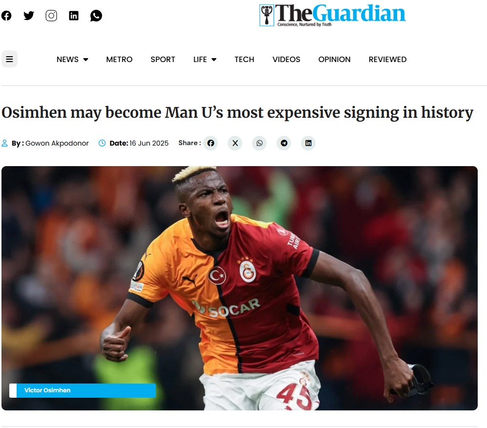 The Guardian Nigeria gazetesine yansıyan bilgilere göre, bu transfer gerçekleşirse Osimhen, Manchester United tarihinin en pahalı oyuncusu olacak.