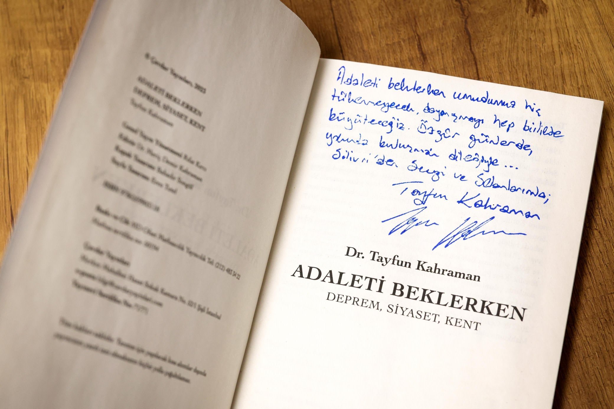 Gezi davasında, hepimizin yerine haksız yere tutuklu bulunan yol arkadaşım Tayfun Kahraman’ın kitabını aldım. Kitabın adı: “Adaleti Beklerken” Hepimiz adaleti bekliyoruz. Dayanışmayı büyüteceğiz ve özgür günlerde buluşacağız. İnanıyorum ki; adaletsizlik yakında son bulacak, Tayfun eşine ve biricik kızı Vera’ya kavuşacak.