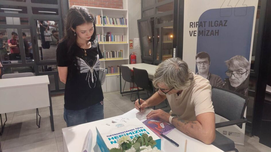 Söyleşi, katılımcıların soruları ile devam etti. Program sonunda Hababam Sınıfı kitabı dağıtıldı ve Emrah Ablak, karikatürlerini imzaladı.