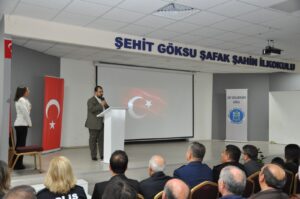 Daha sonra söz alan Şehit Göksu Şafak Şahin’in program boyunca ilgi odağı olan kızı Reyhan Öykü Şahin de program dolayısıyla teşekkürlerini iletti. Konuşmaların ardından okul öğrencileri şehidin biyografisini okudu.