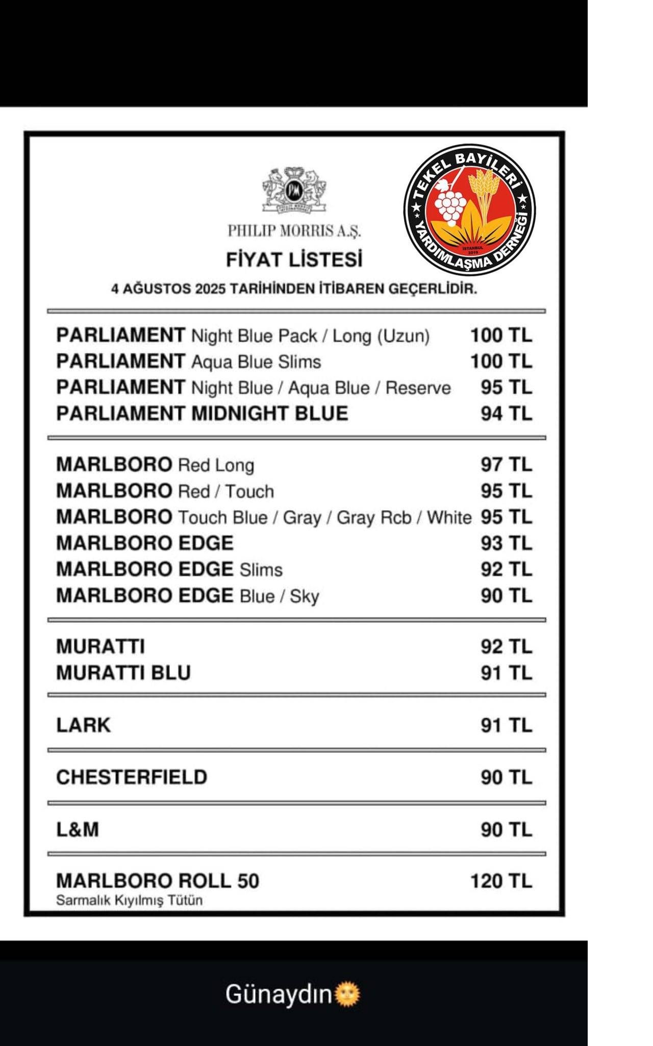 Tekel Bayileri Yardımlaşma Derneği (TBYD) Başkanı Erol Dündar yeni bir zam haberini duyurdu. Dündar’ın duyurduğuna göre Marlboro, Parliament gibi sigaraların içerisinde yer aldığı Philip Morris grubu ürünlerine zam geldi.