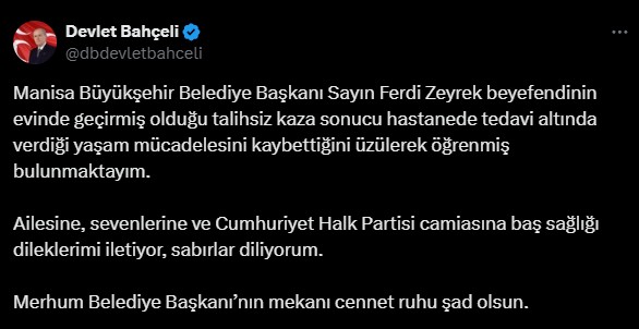 Siyasilerden Ferdi Zeyrek için başsağlığı mesajları
