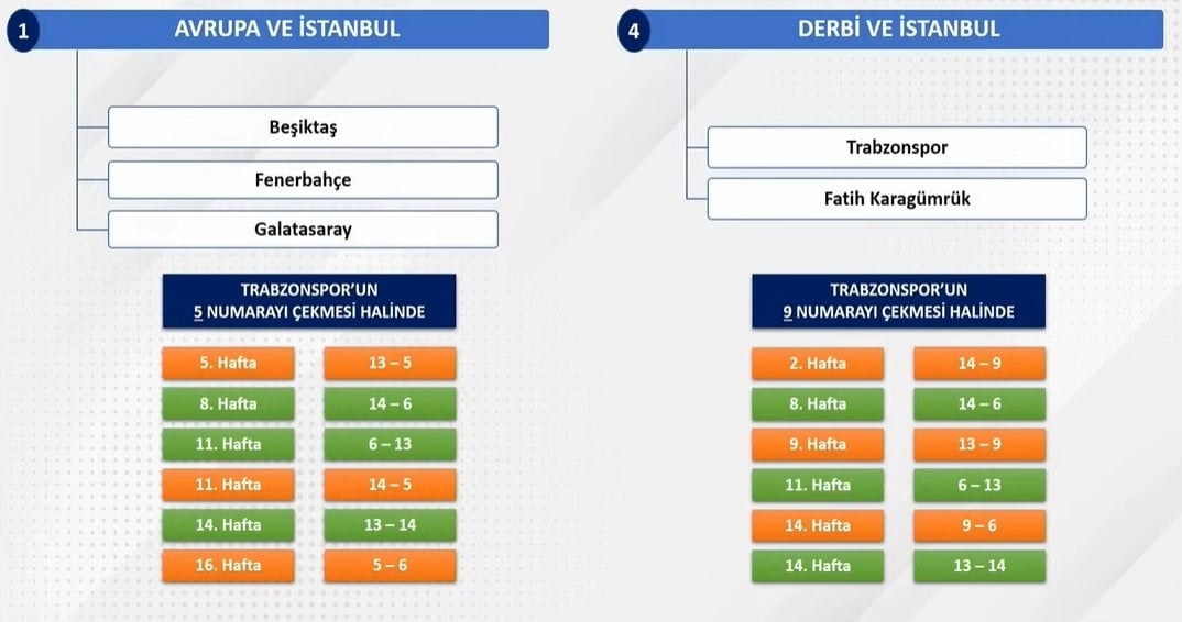 - Hiçbir takım 6 hafta içinde Beşiktaş, Fenerbahçe, Galatasaray ve Trabzonspor ile maç yapmayacak.