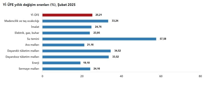 Türkiye İstatistik Kurumu şubat ayı Yurt İçi Üretici Fiyat Endeksi verilerini açıkladı.