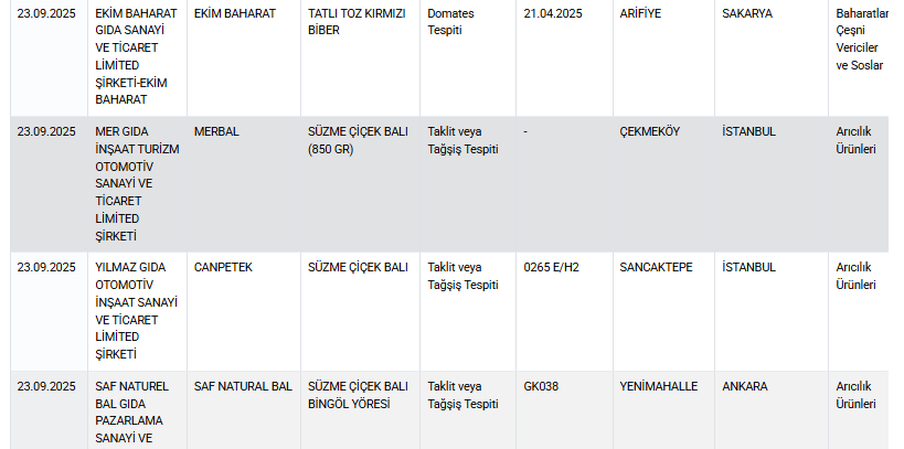 Ticaret Bakanlığı’nın açıkladığı 23 Eylül 2025 listesi, gıda güvenliğinde yaşanan sorunları bir kez daha gözler önüne serdi.