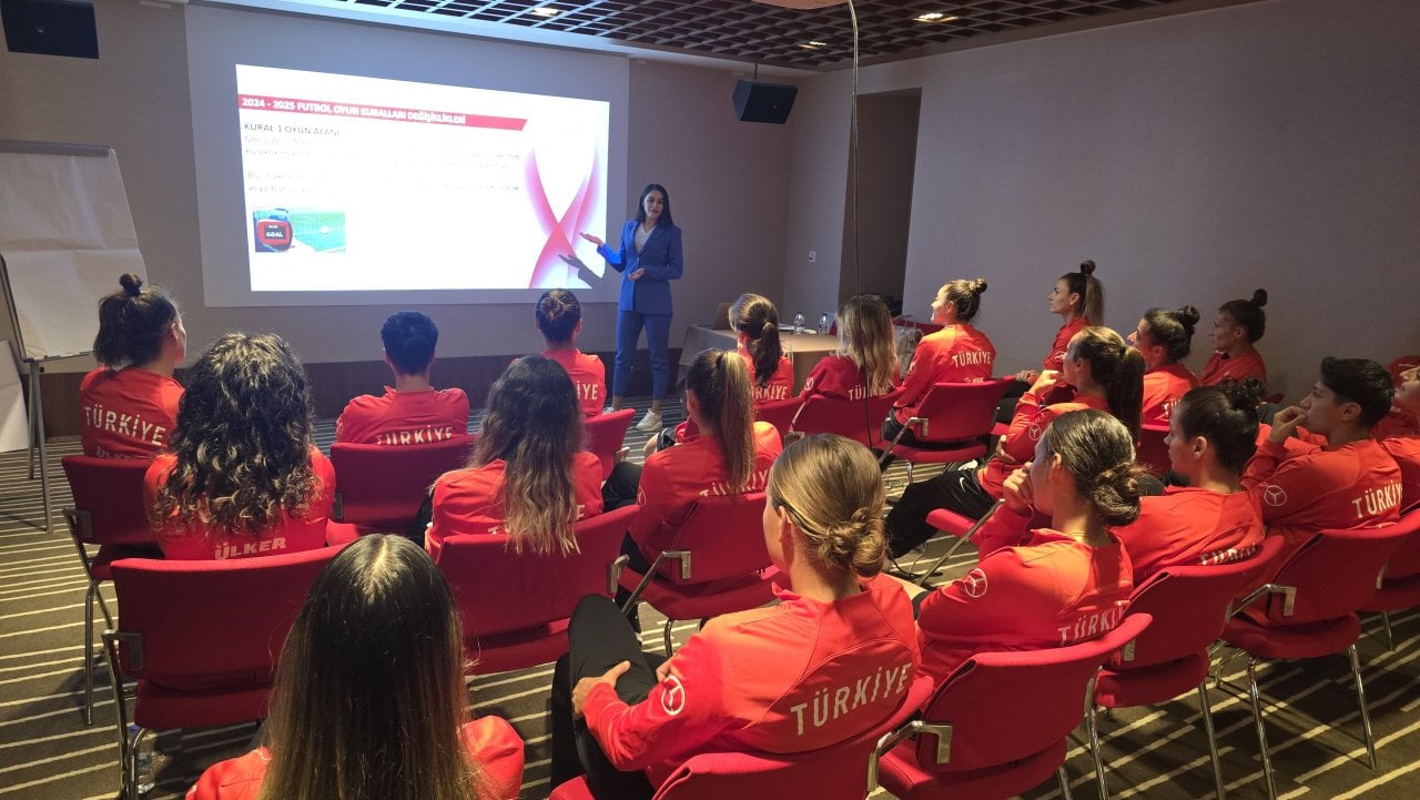 Bu sebeple Merkez Hakem Kurulu’ndan profesyonel VAR hakemi Neslihan Muratdağı, değişen oyun kuralları ve VAR hakkında, oyuncularımız ile teknik heyete bir eğitim verdi. Sunum halinde tüm bilgileri aktaran Muratdağı’na oyuncularımız da takıldıkları konularda soru sorma imkanı buldu.
