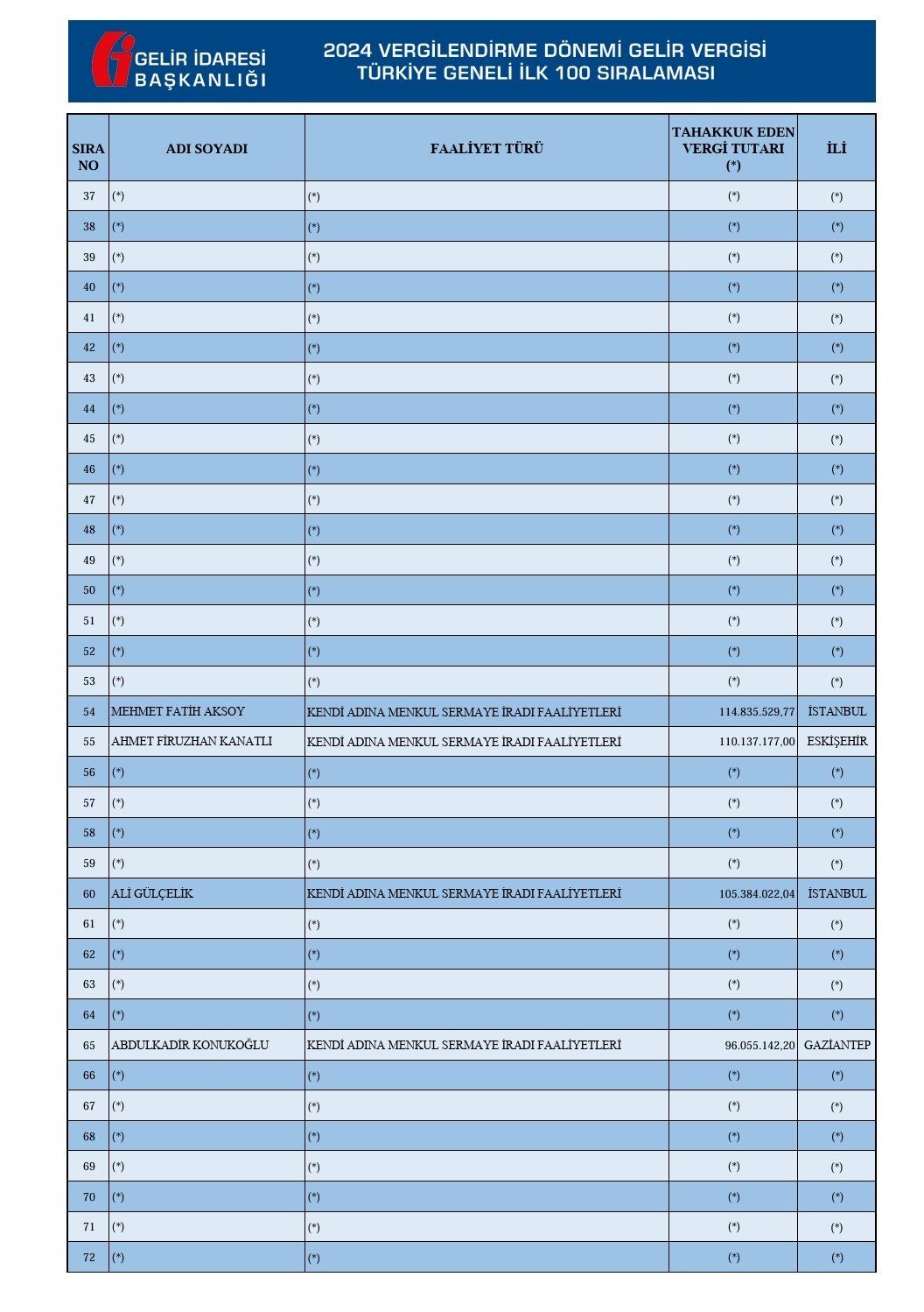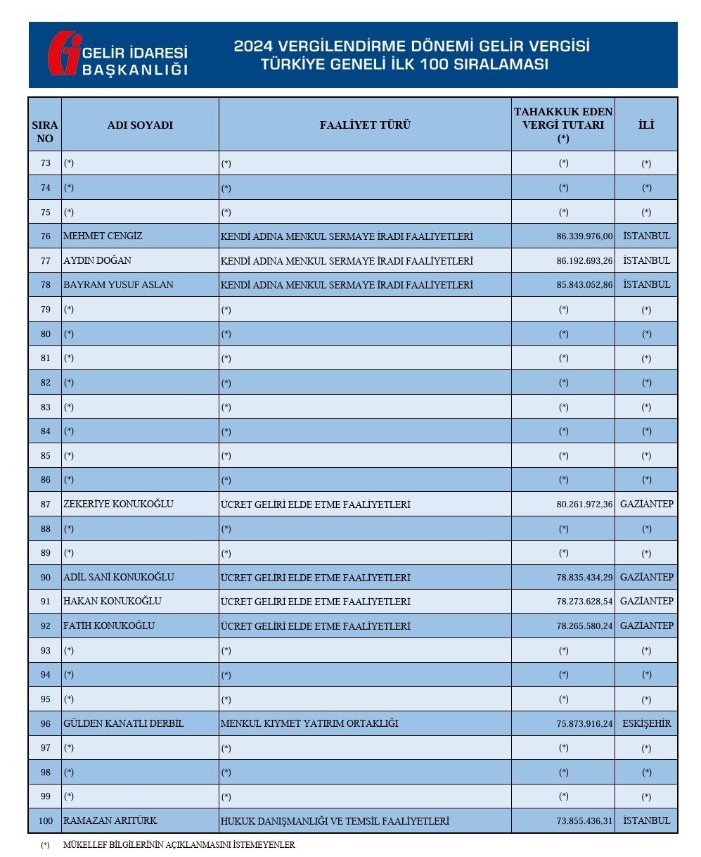 2024 vergilendirme dönemi kapsamında en çok vergi ödeyen üçüncü kişi ismini gizli tutarken, listenin dördüncü sırasında Mustafa Rahmi Koç yer aldı.