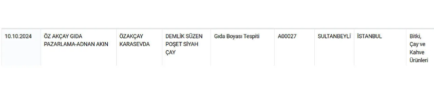 Çay dışında listeye yapılan eklemelerde, ısıl işlem görmüş piliç sucukta mekanik ayrılmış kanatlı eti, üzüm pekmezinde şeker ilavesi, köri baharatında taklit/tağşiş gösteren nişasta tespit edilirken bitkisel karışım yağı ile sumak, pul biber ve tatlı toz biberde gıdada kullanımına izin verilmeyen boya bulunduğu duyurulmuştu.