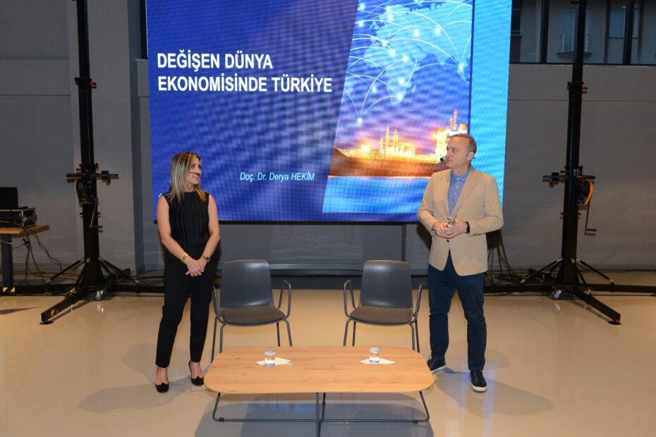 Doç. Dr. Derya Hekim ise dünya imalatının yüzde 30’unu karşılayan Çin’in patent, elektrikli araçlar ve yapay zeka alanlarında ciddi atılımlar kaydettiğine dikkat çekti. Hekim, Amerika Birleşik Devletleri ve Çin arasında çift kutuplu bir dünya düzenine geçildiğini ifade etti.