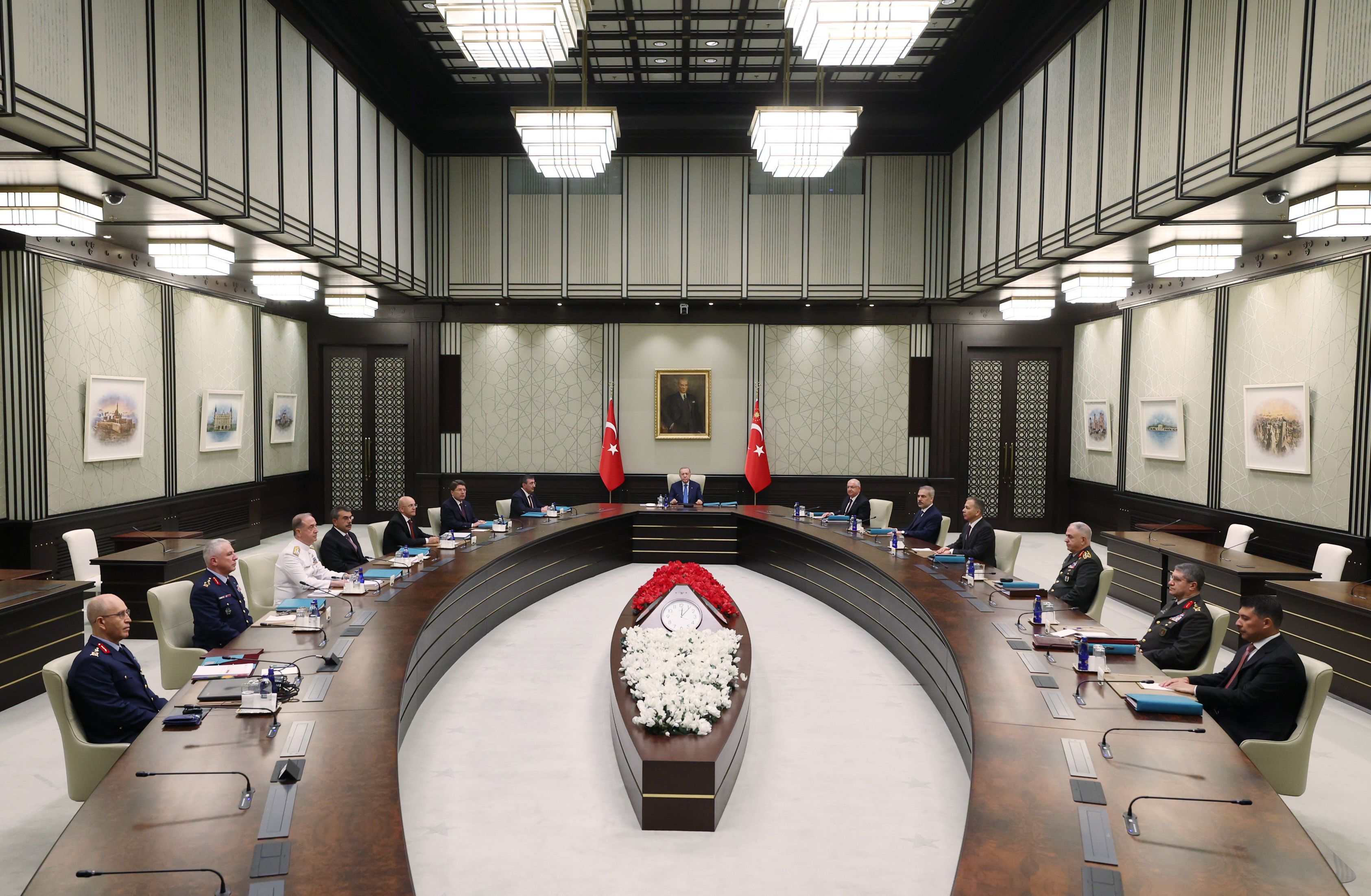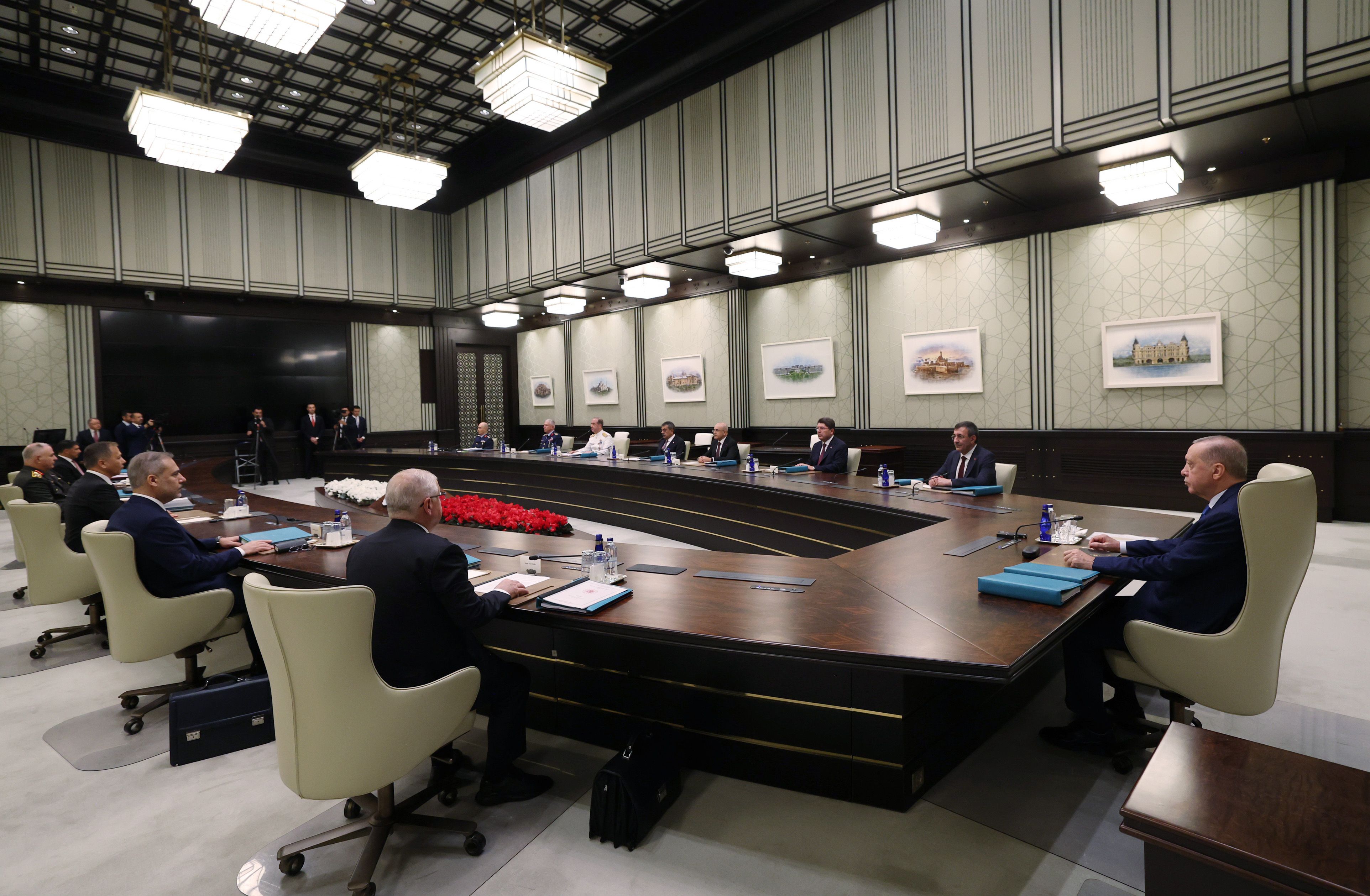 Cumhurbaşkanı ve AKP Genel Başkanı Recep Tayyip Erdoğan başkanlığında toplanan Yüksek Askeri Şura (YAŞ) toplantısı, saat 12.10’da başladı. Toplantıya; Şura üyeleri Cumhurbaşkanı Yardımcısı Cevdet Yılmaz, Adalet Bakanı Yılmaz Tunç, Dışişleri Bakanı Hakan Fidan, Hazine ve Maliye Bakanı Mehmet Şimşek, İçişleri Bakanı Ali Yerlikaya, Milli Eğitim Bakanı Yusuf Tekin, Milli Savunma Bakanı Yaşar Güler, Genelkurmay Başkanı Orgeneral Metin Gürak, Kara Kuvvetleri Komutanı Orgeneral Selçuk Bayraktaroğlu, Deniz Kuvvetleri Komutanı Oramiral Ercüment Tatlıoğlu ve Hava Kuvvetleri Komutanı Orgeneral Ziya Cemal Kadıoğlu katıldı.