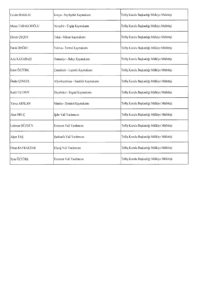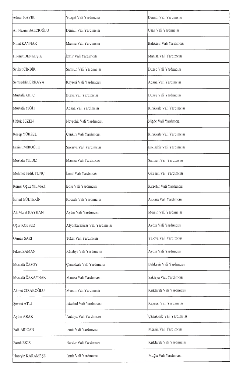 Vali yardımcıları arasında da önemli değişiklikler yaşandı. Bazı vali yardımcılarının görev yaptığı il değişirken, bazıları kaymakam olarak ilçelere atandı, bazıları ise merkez teşkilatında farklı görevler üstlendi.